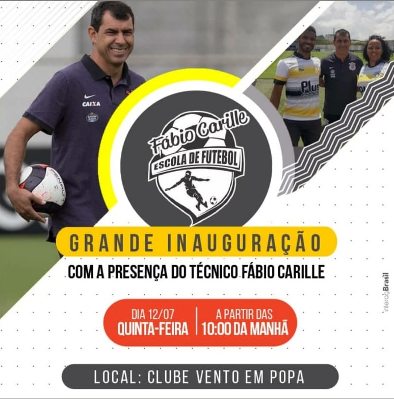 Fabio Carrille estará em LEM neste dia 12/07, quinta-feira, para a inauguração da Escolinha de Futebol. O evento desportivo acontece às 10hs, no Clube Vento em Popa.