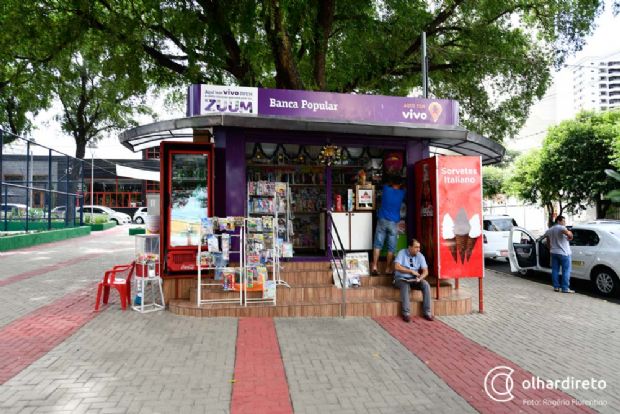 Bancas de jornais viraram pontos de venda de acessórios para celular e quinquilharias chinesas.