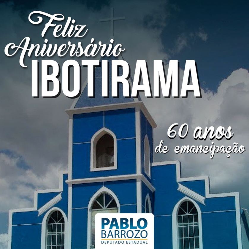 O deputado estadual Pablo Barrozo (DEM) parabenizou nesta terça-feira (14) o município de Ibotirama que completa hoje 60 anos de emancipação política. Barrozo, que representa a cidade na Assembleia Legislativa da Bahia saudou todos os munícipes pela passagem do aniversário.