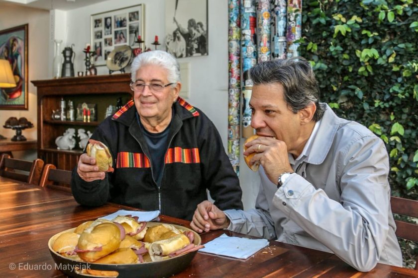 Roberto Requião e o candidato a vice de Lula, Fernando Haddad, “faturam” alguns sanduíches de mortadela na casa do Senador.