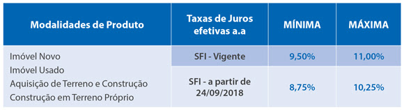 Nesta sexta-feira (14), a CAIXA anunciou a redução de 0,75 p.p. das taxas de juros do crédito imobiliário para aquisição de imóveis enquadrados no Sistema de Financiamento Imobiliário (SFI), desde que o valor de avaliação do imóvel seja de até R$ 1,5 milhão. As taxas mínimas do SFI passarão de 9,5% a.a para 8,75% a.a. As novas taxas começam a valer a partir de próximo dia 24/09.