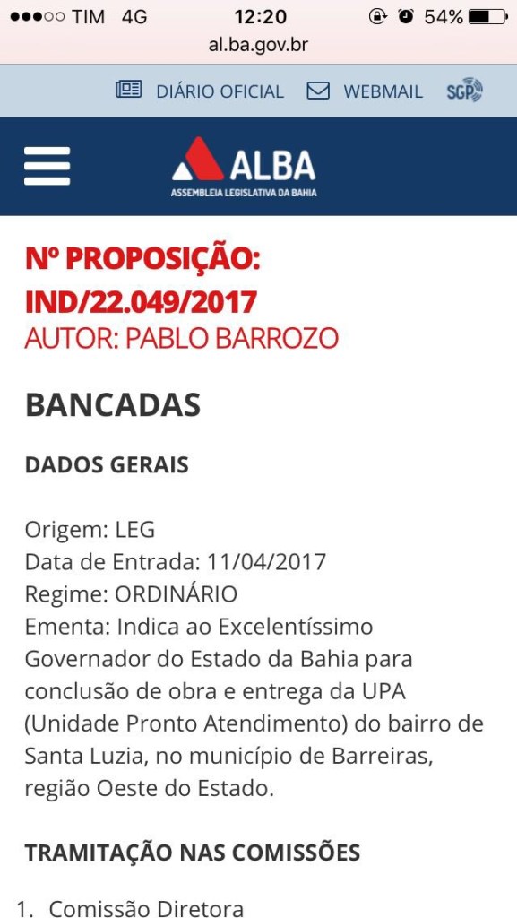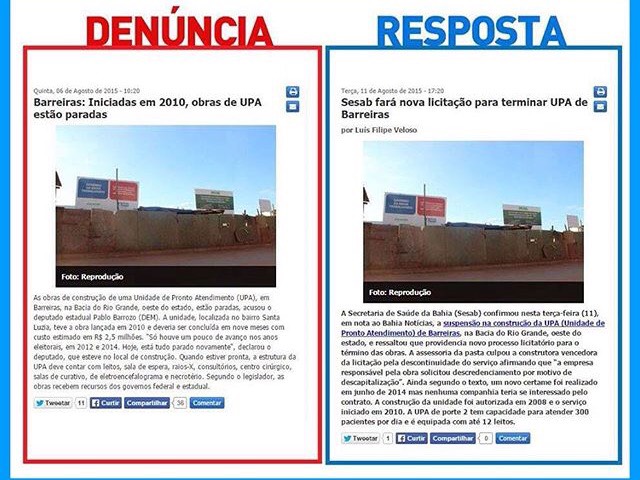 As obras de construção da UPA tiveram início em 2010 e deveriam ser concluídas em nove meses com custo estimado em R$ 2,5 milhões. No entanto, só houve mínimos avanços nos anos eleitorais, entre 2012 e 2014. Foi o que denunciou o deputado em fiscalização na obra em 2015, com repercussão em toda Bahia.