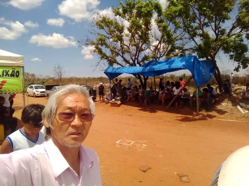 O presidente da AMMO – Associação dos Moradores do Mimoso do Oeste, Fernando Murata, foi se solidarizar com os manifestantes que bloquearam a entrada de caminhões de lixo no depósito: