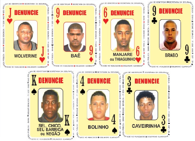 Através do Baralho do Crime, a população pode conhecer os rostos dos criminosos mais perigosos do estado e contribuir para suas capturas. As denúncias podem ser transmitidas, de forma sigilosa, através do Diques Denúncia 3235-0000 (capital) e 181 (interior do estado).