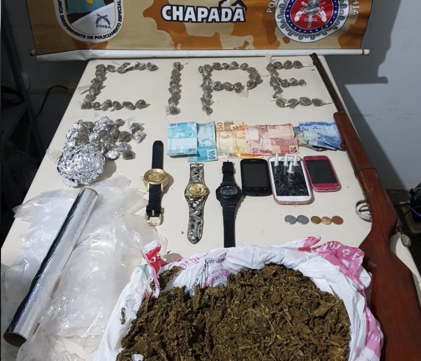 A Companhia Independente de Policiamento Especializado (Cipe/Chapada) prendeu no último sábado (2), Luiz Antônio Teodoro e Ivoneide Evangelista dos Santos no município de Palmeiras, Cristiano Arruda dos Santos, em Iaçu, e Cleisson de Almeida Nepomuceno e Paulo Victor Pereira Macedo na cidade de Itaberaba, todos envolvidos com o tráfico de drogas. As ações que aconteceram de formas distintas apreenderam maconha, cocaína, dinheiro e uma arma.