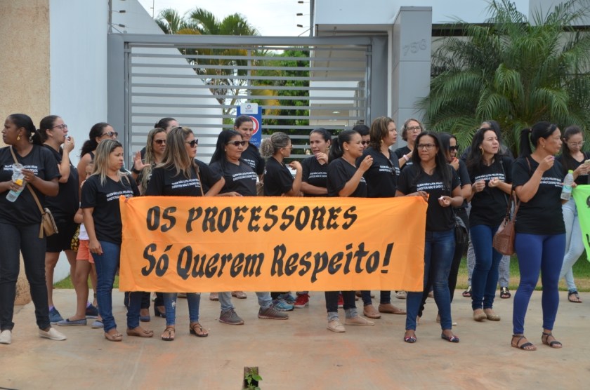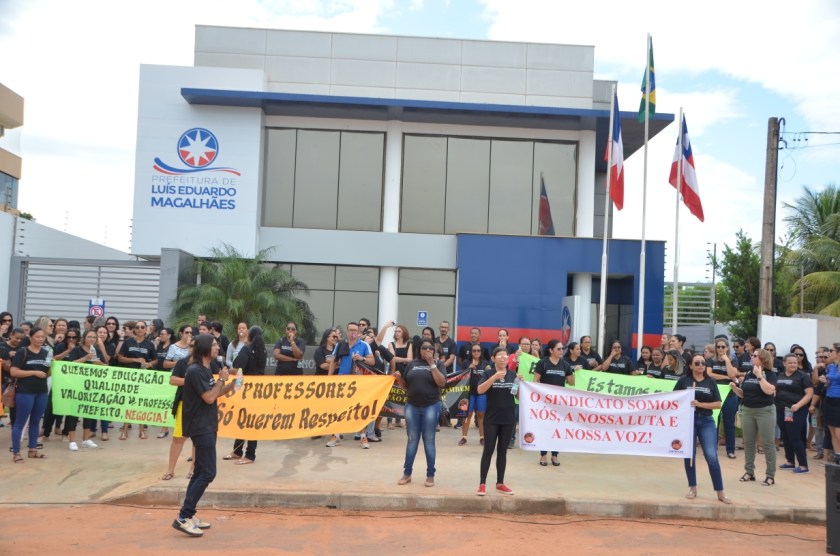 Os professores municipais de Luís Eduardo Magalhães aproveitaram a data de início do ano letivo para protestar em frente ao prédio que abriga o gabinete do Prefeito e a Secretaria de Governo.