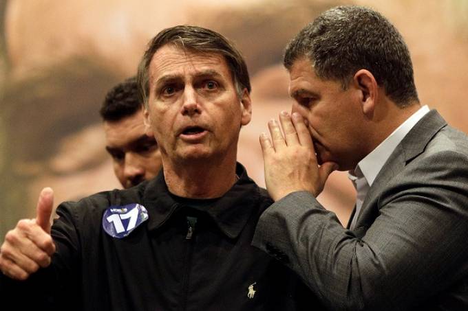 Na foto de Ricardo Moraes/Reuters, dá para se notar, que no momento do flagrante Bebianno assoprava algo para Jair Messias, o que acabou comprometendo de fato a sua saúde mental.