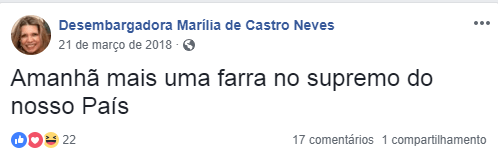 A Desembargadora deita falação nas redes sociais, fato muito estranho a uma magistrada da sua importância: