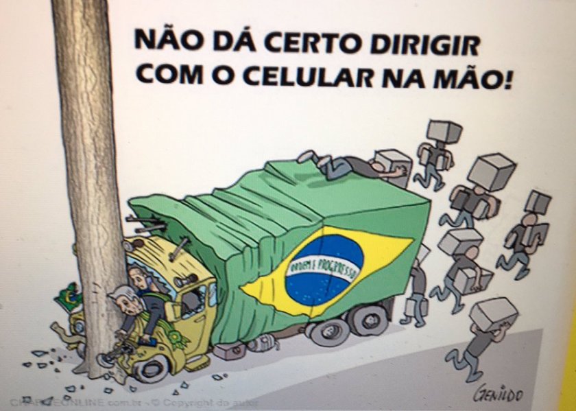 O Presidente não larga o celular. Acabou colidindo o caminhão do Brasil com o poste!