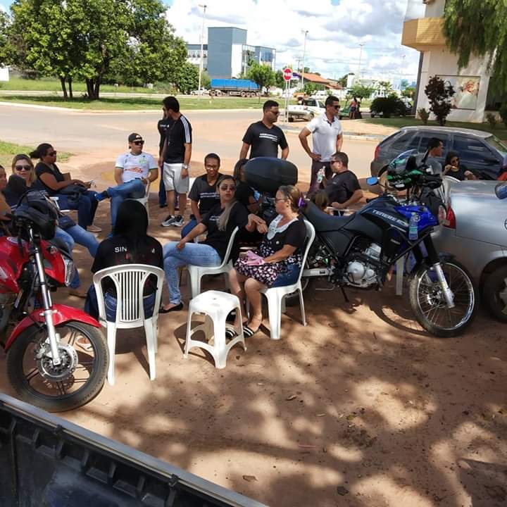 Professores em plantão em frente à Prefeitura Municipal de LEM