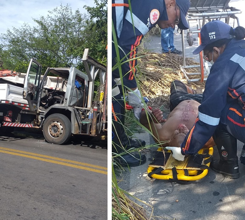 Um caminhão guincho bateu na traseira de outro caminhão carregado de postes de concreto, de iluminação pública e deixou motorista gravemente ferido, na manhã desta terça-feira (14), na BR-135, na serra de Riachão das Neves.