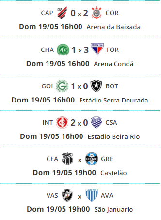 Com a vitória de hoje, o Internacional está chegando nos ponteiros, com 9 pontos, a quatro pontos de distância do líder Palmeiras. Às 19 horas, o Vasco tem a chance de deixar a lanterna, se derrotar, em São Januário, o penúltimo colocado, Avaí. E o Grêmio PA tem a chance de deixar a zona da degola se derrotar o Ceará.