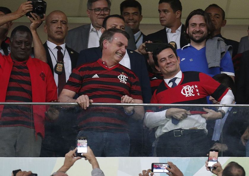 Bolsonaro e Moro, ontem à noite, no Maracanã.