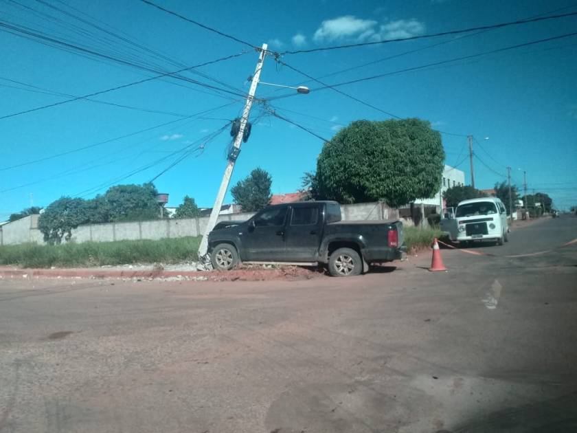 Com a colisão, a Amarok acabou atingindo um poste de energia.