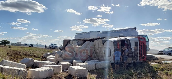 Na tarde deste sábado, 20, pouco depois das 15h, um caminheiro identificado como Cláudio Aparecido dos Reis, de 54 anos, ficou levemente ferido ao tombar uma carreta na BR 242, próximo da empresa Coringa, no Setor Industrial de LEM.