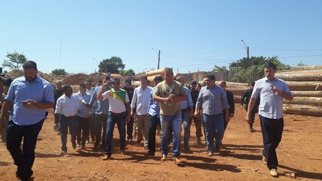 Ministro Ricardo Salles em visita em madeireira de Espigão — Foto: Magda Oliveira/G1