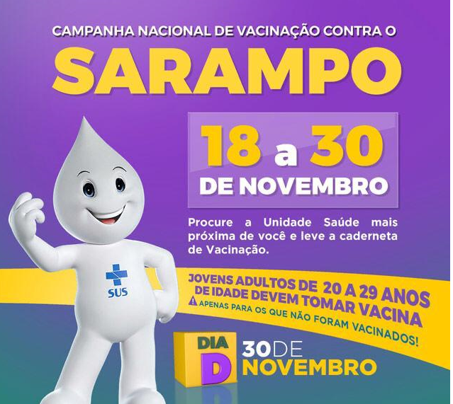 De 18 a 30 de novembro, campanha de vacinação contra o Sarampo