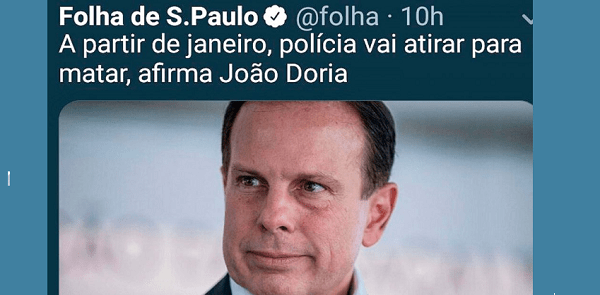 A entrevista de agora há pouco, onde o governador João Dória disse que “é uma circunstância inaceitável que a melhor polícia do Brasil utilize de violência ou de força desproporcional, sobretudo quando não não há nenhuma reação de agressão” e na qual se disse “chocado” com os atos de violência registrados em diversos vídeos de ações de PMs sobre moradores de comunidades pobres tem mais do que a hipocrisia com que governantes se expressam nestas ocasiões.