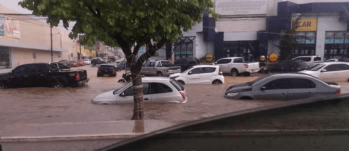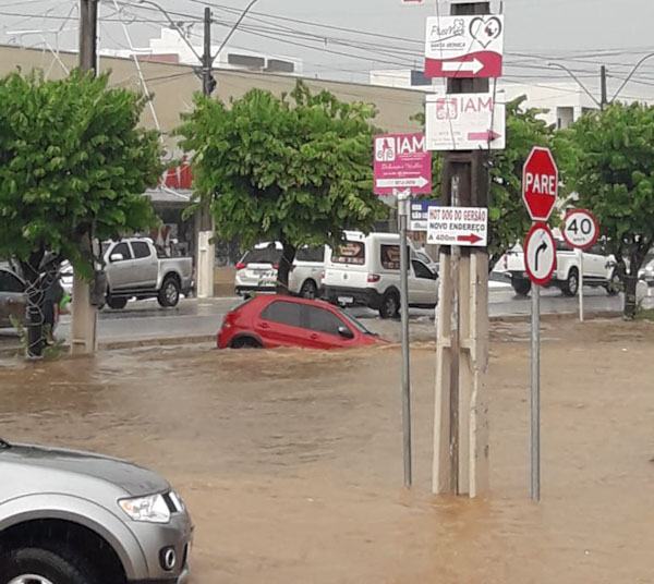 Barreiras também sucumbe às chuvas torrenciais. Danos de monta a veículos e prédios.