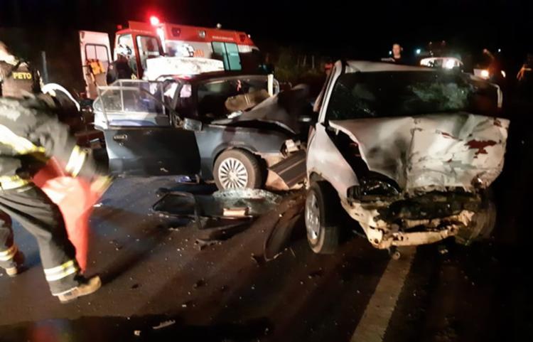 Uma colisão frontal entre dois veículos deixou duas pessoas mortas e outras três feridas na noite deste domingo, 19, na rodovia BR-418, Nova Viçosa (distante 698 km de Salvador). Segundo informações do site Teixeira Hoje, as vítimas fatais foram os motoristas dos carros, identificados como Bernardo Cardoso Krygman, 54, e José Vilton de Avelar Araújo, 40.