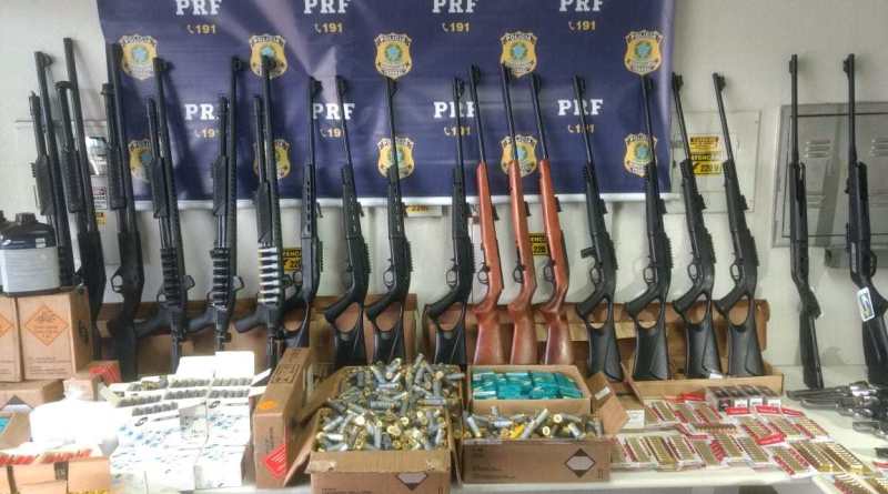 A Polícia Rodoviária Federal (PRF) realizou, na madrugada deste domingo (16/02), a maior apreensão de armas já feita em Minas Gerais. Foram apreendidas 13 pistolas, 5 revólveres calibre 38, seis espingardas calibre 12, 12 rifles calibre 22 e 18 espingardas de pressão, totalizando 54 armas. Além disso, a PRF ainda recolheu seis quilos de pólvora, 5 mil espoletas, 15 mil munições calibres 20, 22, 9 mm, 12, .45, 38, 380.