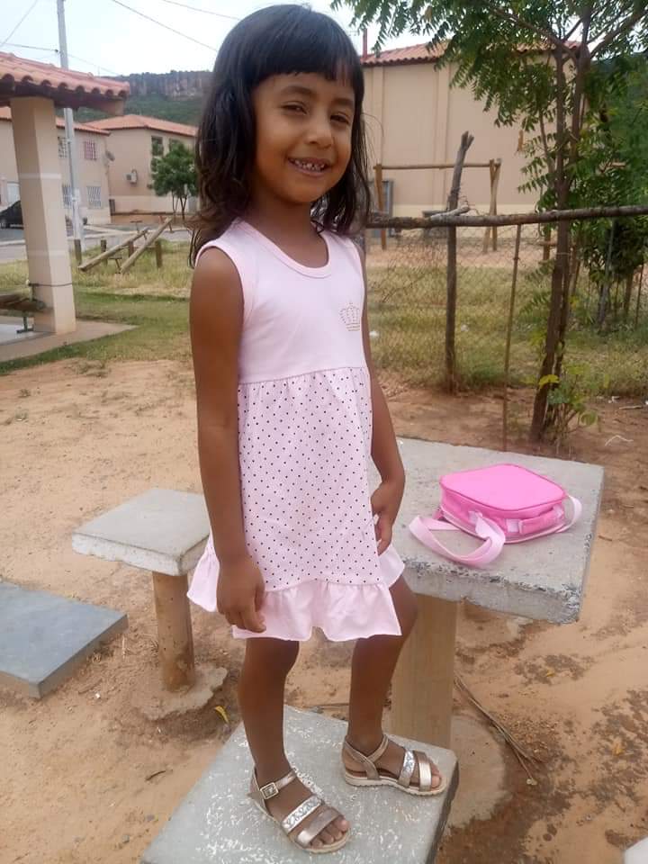 Uma menina, Anny Heloisa de Oliveira Alves, de apenas 5 anos, morreu na manhã de hoje depois de ser atingida por 4 tiros, dois na cabeça e dois no braço, quando dois marginais entraram num bar, na Rua Peru, no bairro Barreiras I, em Barreiras e alvejaram o Padastro da criança.