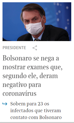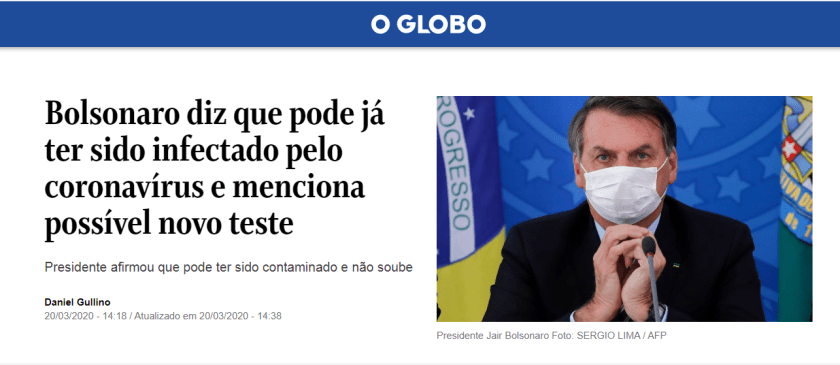 Só agora o Presidente da República afirma que pode estar contaminado e que ainda fará novos testes para saber.