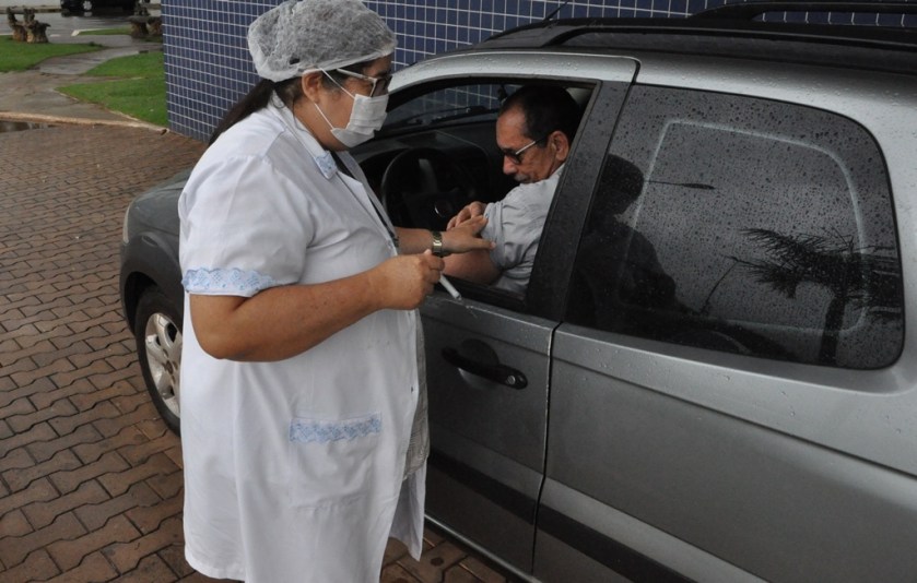 Idosos com 60 anos ou mais já podem se vacinar sem sair do carro em três postos de vacinação, na Câmara Municipal de Vereadores, 10º BEIC e Rodoviária, das 8h às 17h.