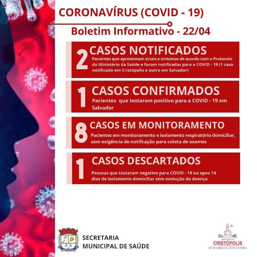 Estes números contabilizam todos os registros de janeiro até as 17 horas desta quarta-feira (22). O óbito que anteriormente foi registrado no município de Água Fria, trata-se de uma pessoa que residia na cidade no interior, no entanto foi a óbito em Salvador.​