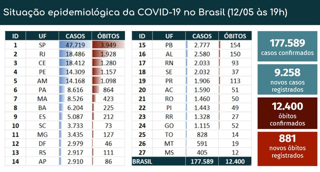 177.589 casos confirmados, eram 168.331 na segunda-feira (11)