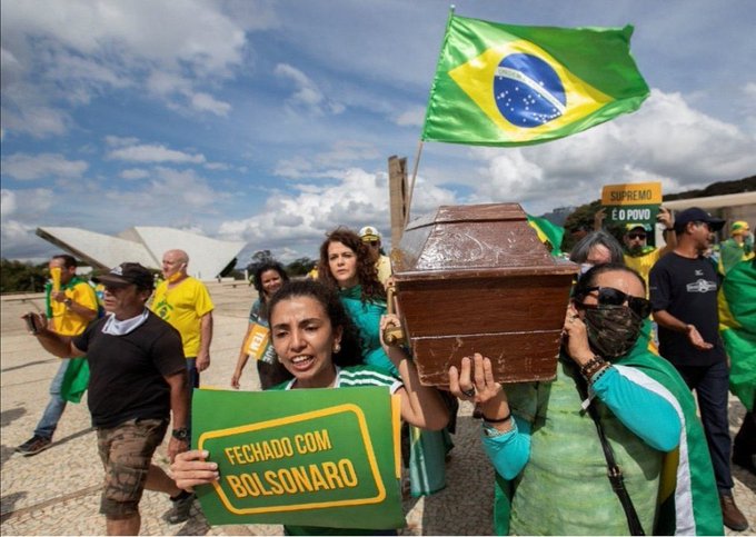 O que significa colocar uma caixão fúnebre às costas e sair às ruas, enrolado em bandeiras brasileiras e cartazes com a inscrição “Fechado com Bolsonaro”?