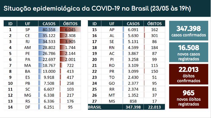 Os números do avanço da pandemia de Coronavírus no Pará foram divulgados às 13 horas. Mesmo assim o Ministério da Saúde os omitiu da planilha divulgada no final da tarde, 19 horas. Objetivo: interromper a série histórica de mais de 1.000 óbitos por dia.