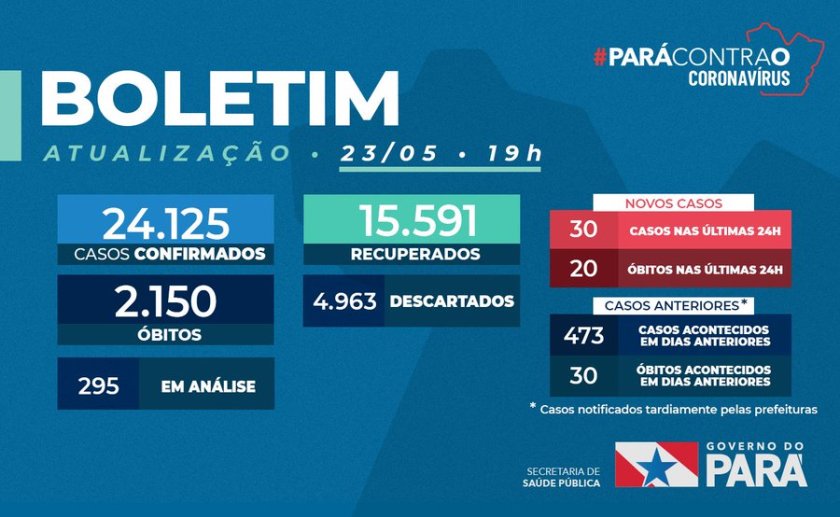 Às 19 horas, a Secretaria da Saúde do Pará repetiu a publicação dos dados: