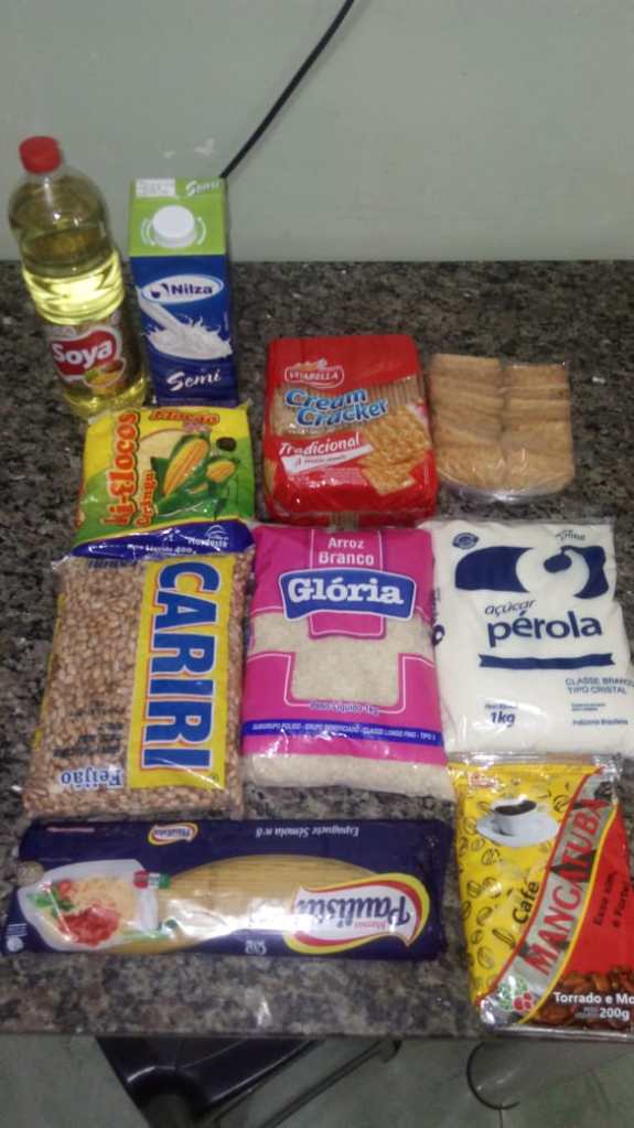 Feijão, Arroz, Macarrão, Leite, Cuscuz, Café, Óleo, Bolacha de sal, Biscoito, açúcar. Agora valeu a pena a mini-cesta da Merenda Escolar, distribuída pela Secretaria de Educação de Luís Eduardo Magalhães, com a verba do PNAE – Programa Nacional de Alimentação Escolar.