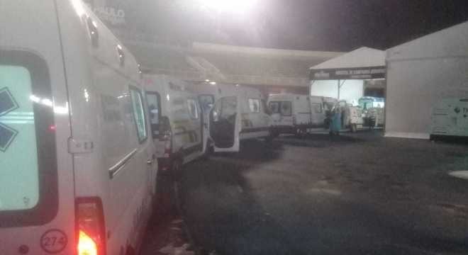 Uma extensa fila de mais de 20 ambulâncias que iriam desembarcar pacientes com sintomas de covid-19 foi registrada na madrugada desta quinta-feira (4) no hospital de campanha do Complexo Esportivo do Ibirapuera, na zona sul de São Paulo.