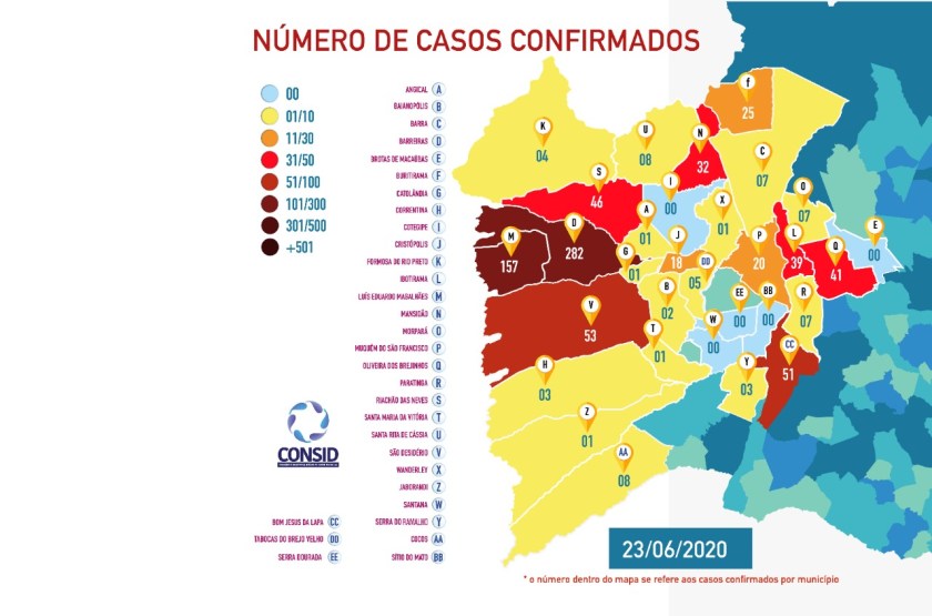 Acima, o leitor pode conferir os casos no dia de ontem na área do Consórcio CONSID.