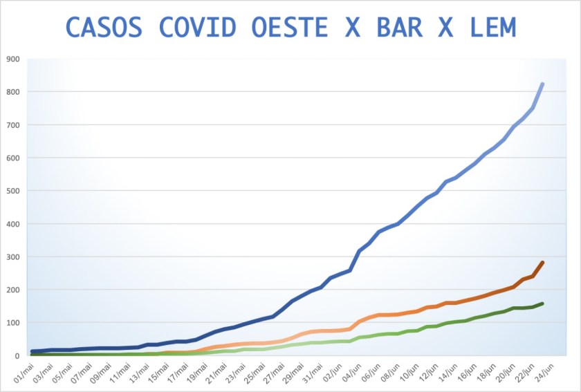Abaixo, a evolução das curvas de contaminações no Oeste, Barreiras e Luís Eduardo Magalhães.