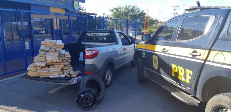 Mais de 110 quilos de maconha foram apreendidos na tarde deste domingo (5) em Jequié, no sudoeste baiano. Segundo a Polícia Rodoviária Federal (PRF-BA), a droga estava escondida em compartimento oculto de uma caminhonete FIAT/Strada. O motorista do veículo foi preso na ação. O fato ocorreu na altura do km 677 da BR-116 após ordem de parada ao automóvel.