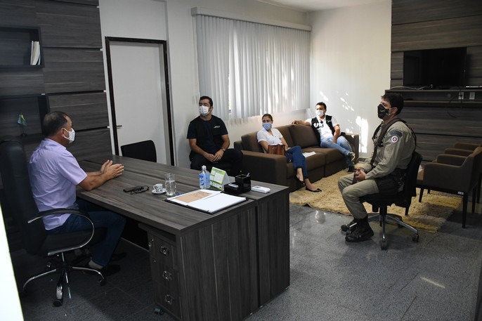 A Prefeitura de Formosa do Rio Preto, por meio da Secretaria Municipal de Saúde, intensificará a fiscalização para conter o avanço do coronavírus no município, com a parceria da Polícia Militar. A definição ocorreu em reunião desta terça-feira (14/07) entre o prefeito Dr. Termosires Neto, o comandante da 86ª Companhia Independente de Polícia Militar, Major Diz Pazos, a secretária de Saúde, Thaise Santos, o coordenador da Vigilância Sanitária (Visa), Jailton Pereira da Silva, e o técnico da Visa, Nivaldo Santana.