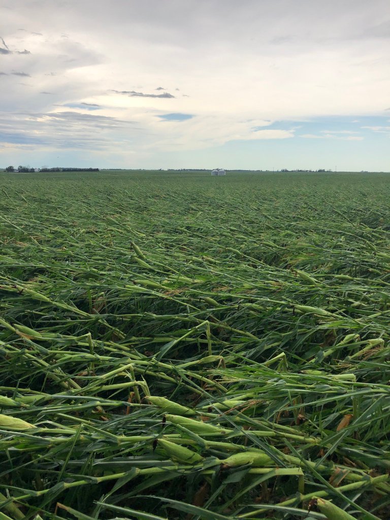 Um dos estados mais afetados foi o de Iowa, que teve silos retorcidos, produções perdidas e galpões devastados. No twitter, o produtor de milho Jim Smith lamentou as perdas em sua propriedade. “Todos os meus oito campos de milho estavam muito bem e uma boa parte quebrou”, disse ele.
