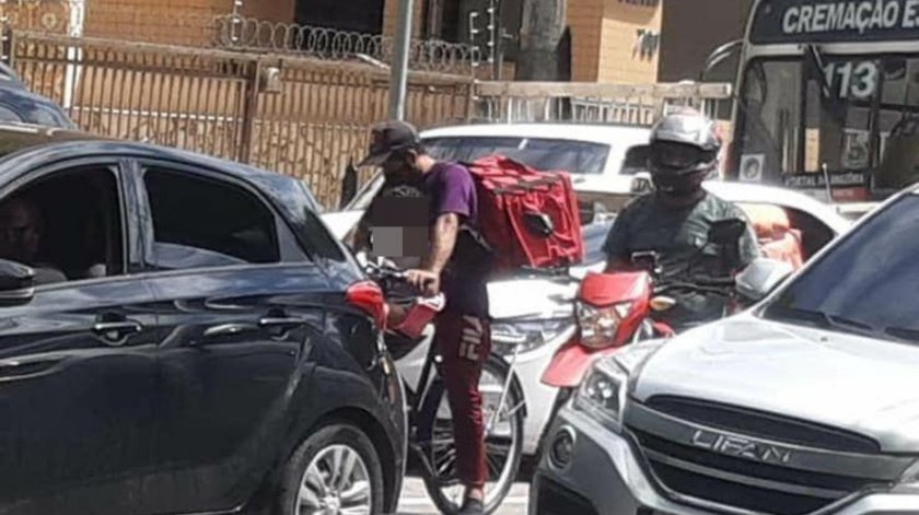 A solução em meio a situação de desemprego foi buscar um trabalho alternativo, como o de entregador. No entanto, como não tinha com quem deixar, optou por levar a filha. O entregador conta que costuma fazer as entregas pelo período da manhã, em que há mais pedidos por causa da hora do almoço.