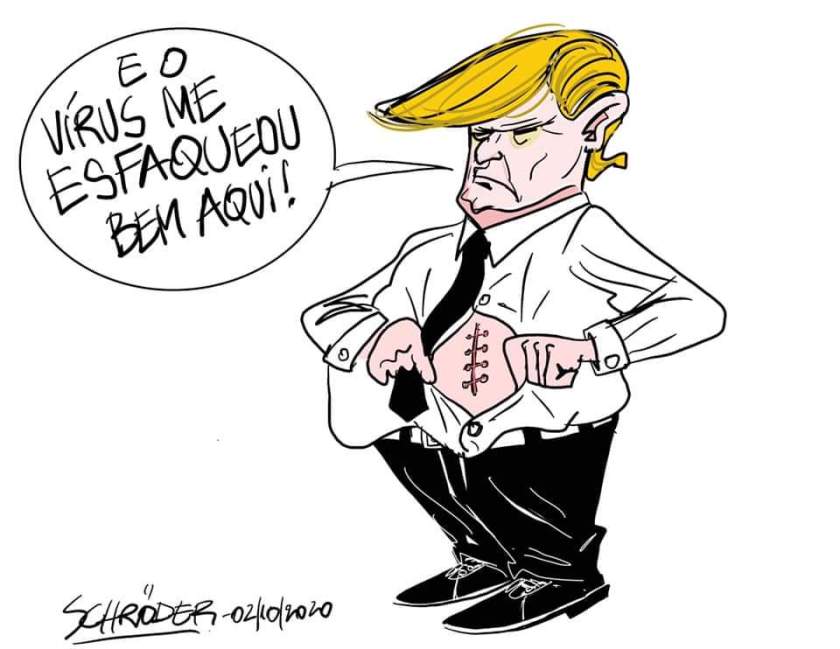 Trump foi levado na noite da sexta-feira para o hospital militar Walter Reed para ser tratado da Covid-19. Na manhã deste sábado, seu médico deu uma declaração dizendo que ele estava “bem” e sem necessidade de suplementação de oxigênio.