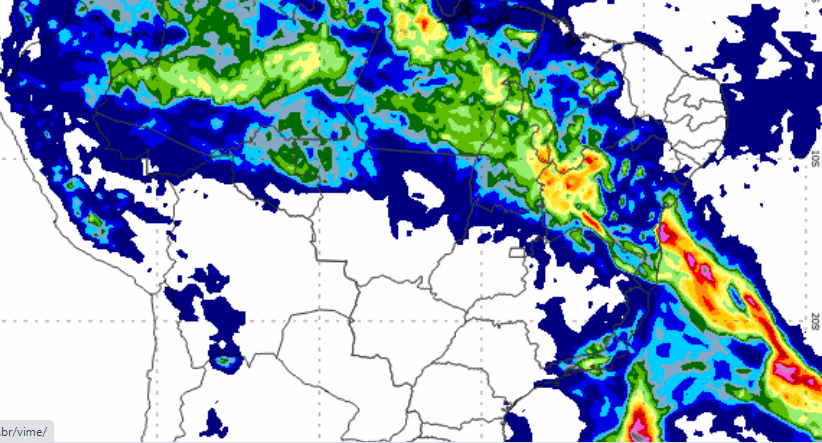 O Inmet previu um volume de 30 a 60 mm de chuva por hora ou 50 a 100 mm por dia. Além disso, há a previsão de ventos intensos, de 60 a 100 km/h, com risco corte de energia elétrica, queda de galhos de árvores, alagamentos e raios.