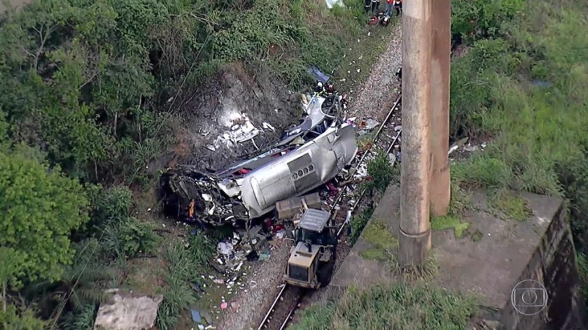 Segundo o último balanço disponibilizado pela polícia, 46 pessoas se envolveram no acidente em que um ônibus caiu de um viaduto de cerca de 35 metros de altura.