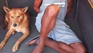 Cachorro acompanha companheiro preso: porque amigo é amigo e traíra é traíra.