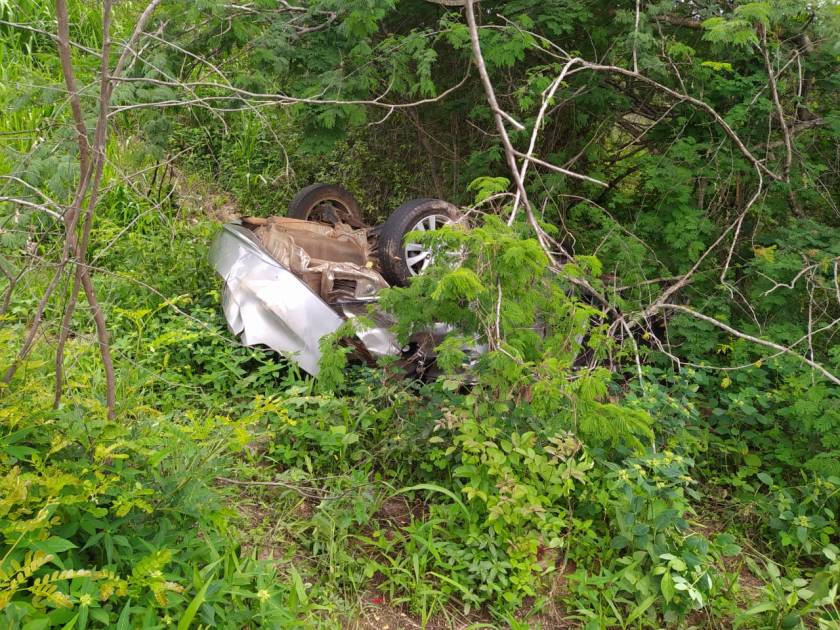 O carro perdeu-se depois de uma curva perigosa do trecho e praticamente não deixou marcas no capim na margem esquerda da estrada, antes de mergulhar numa ribanceira de mais de 50 metros, onde parou capotado e com a cabine amassada.