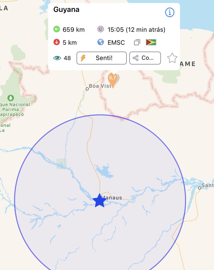 Os abalos são réplicas do terremoto de magnitude de 5.9 na escala Richter, que atingiu a Guiana e também foram sentidos em Roraima.