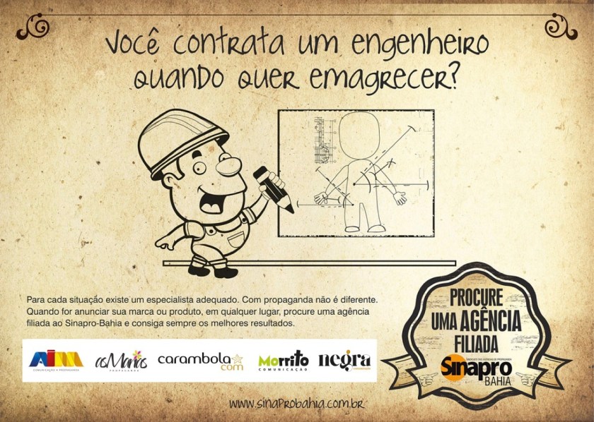No mês em que se comemora o Dia do Publicitário, o Sindicato das Agências de Propaganda do Estado da Bahia (Sinapro-Bahia) vai promover, em todo a Bahia, uma campanha de valorização das agências de propaganda associadas à entidade, principalmente no interior do Estado. Com o mote “Para cada situação existe um especialista”, a campanha foi criada e veiculada, originalmente, em 2013 e tem o objetivo de estimular as empresas nas suas estratégias de comunicação e marketing a buscarem agências de publicidade associadas ao Sinapro-Bahia, que podem oferecer serviços com qualidade, eficiência, credibilidade, que atendam às necessidades dos clientes e possibilitam melhor entrega de resultados.