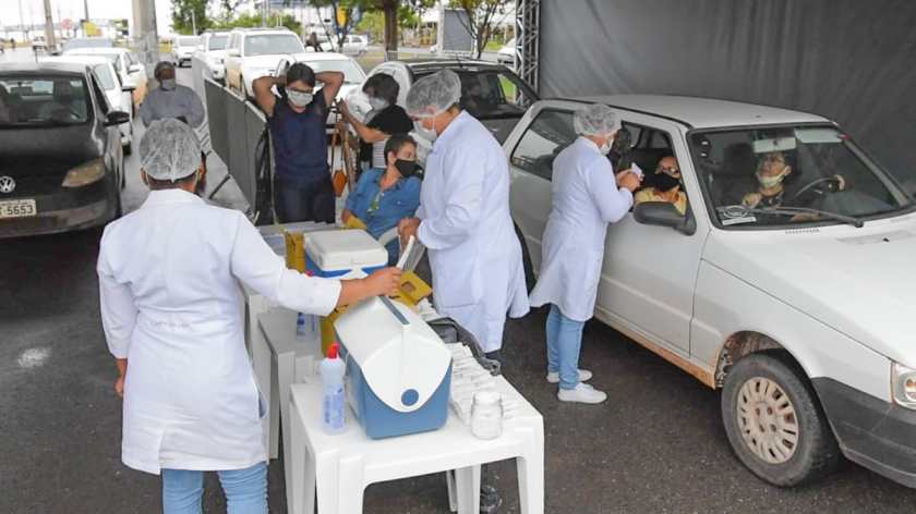 Mesmo com a chuva constante deste sábado (20), mais de 70 pessoas, entre idosos e profissionais de saúde foram vacinadas com a 2º dose da Coronavac pelo sistema Drive Thru montado pela Prefeitura de Luís Eduardo Magalhães, através da Secretaria de Saúde, no estacionamento às margens da BR 242.