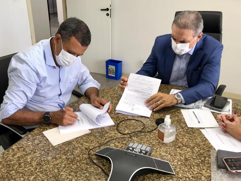 O presidente do CONSID, Zito Barbosa, ee o secretário de Desenvolvimento da Bahia, Nelson Pelegrino, assinaram termo de cooperação técnica entre a SEDUR e o Consórcio, visando a construção do Plano Regional de Resíduos Sólidos.